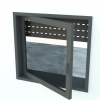 Window and door with handle and blind or slat blind.